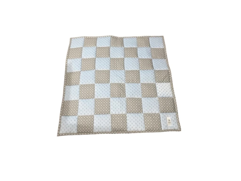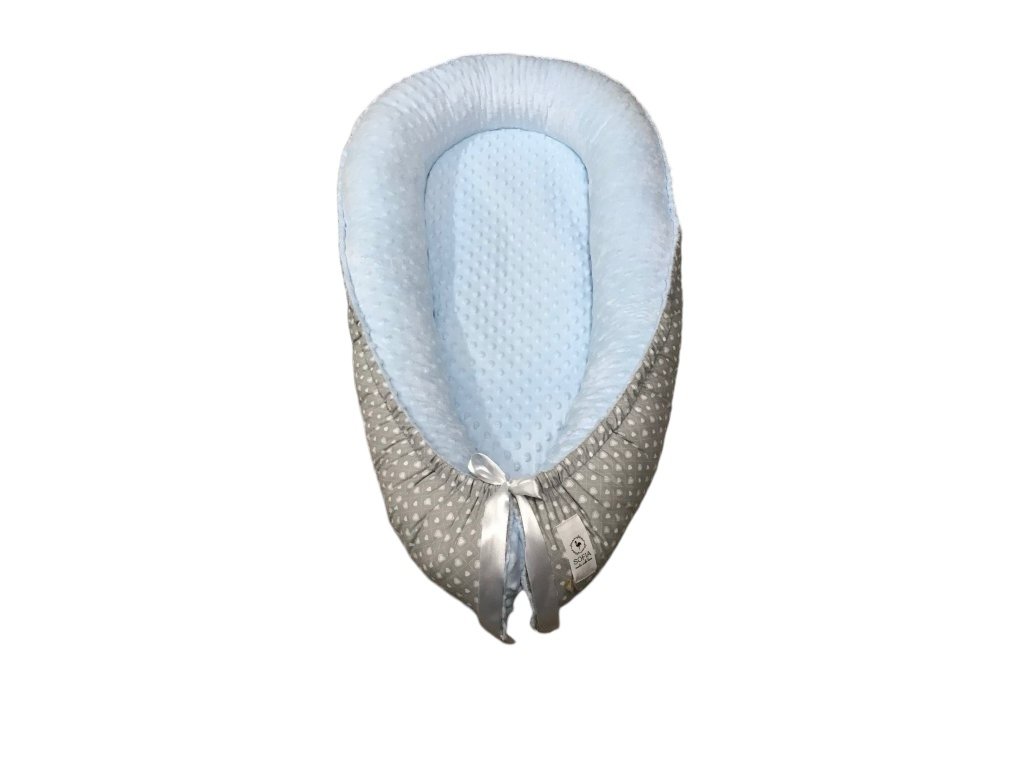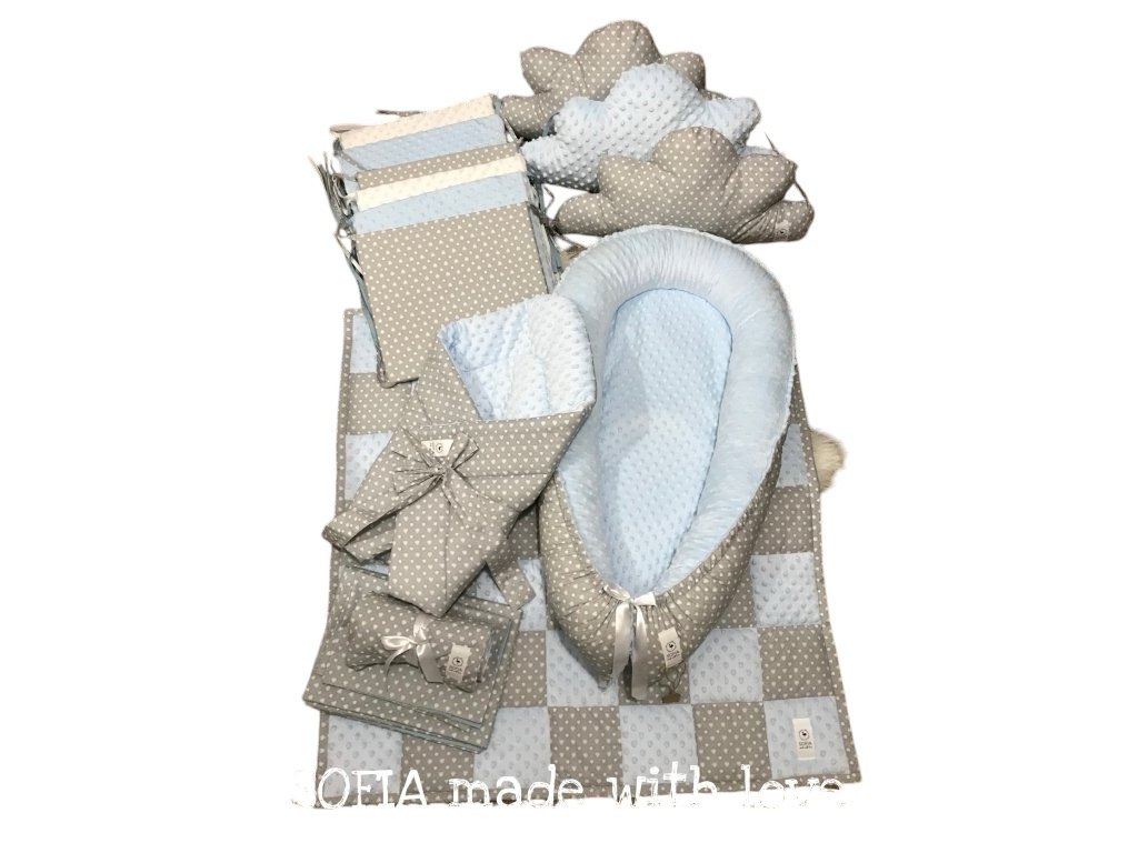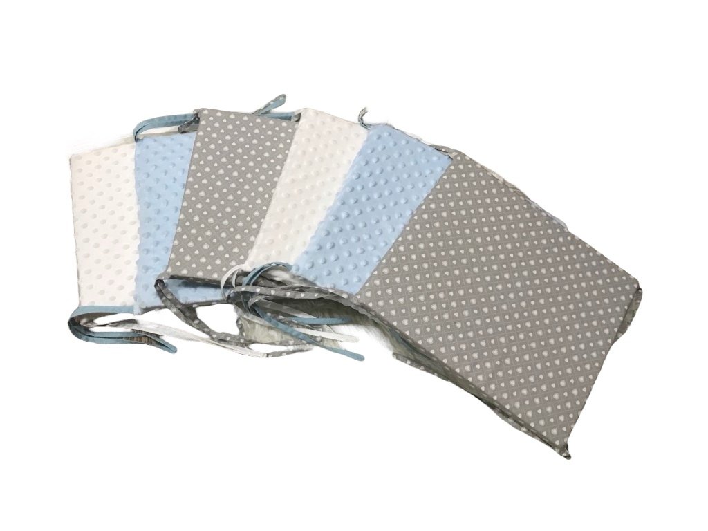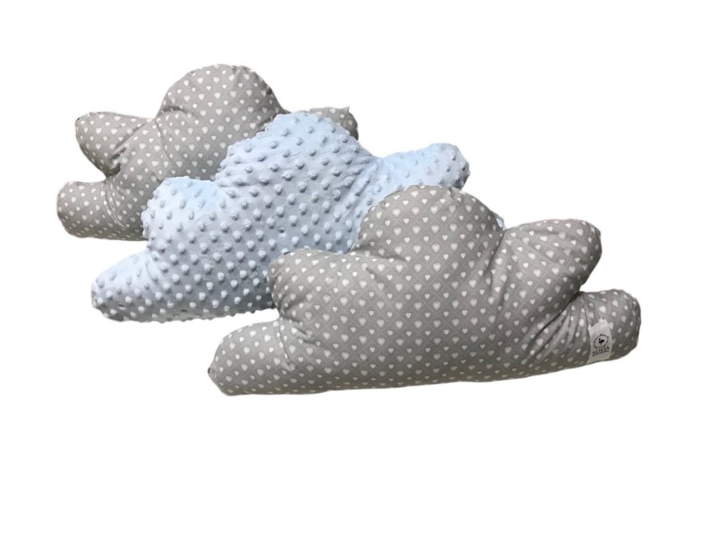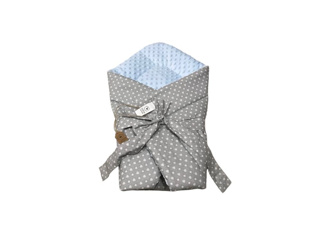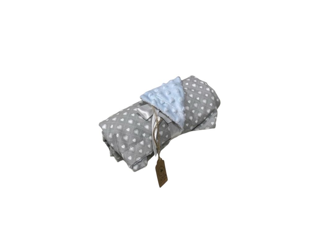 Set - světle modrá minky, šedá s většími a menšími srdíčky / design by Kristýna Hoidarová Kolocová
