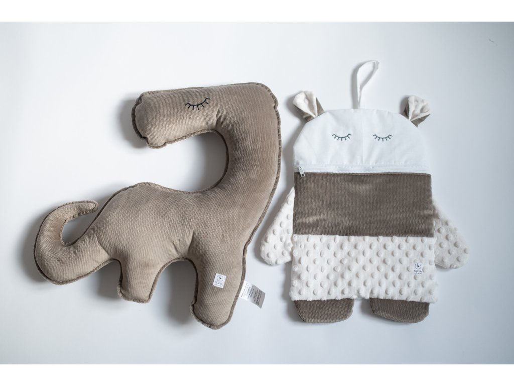 - Ukládací prostor na pyžamo v "ústech" pyžamožrouta uzavíraných zipem